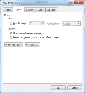 - From the context menu, select Table and Word will display the Table Properties dialog box.
